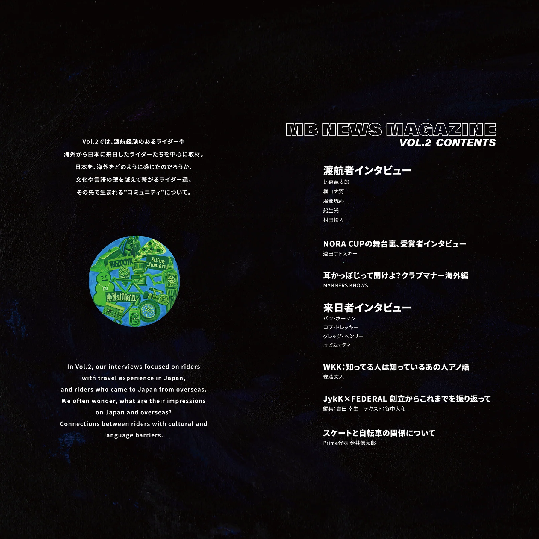 BMXがつないだ人の繋がり、日本の魅力について掘り下げています。レジェンドBMXライダーのバン・ホーマンやフォトグラファーのロブ・ドレッキーの貴重なインタビューなど内容盛り沢山のフルカラー74ページとなります。